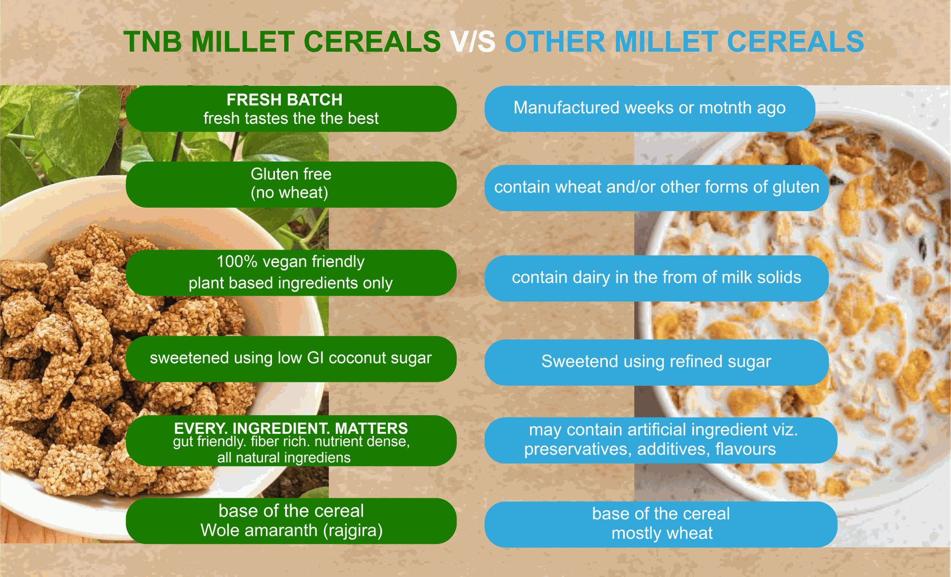 The ingredients of all our Millet Cereals have a brilliant
