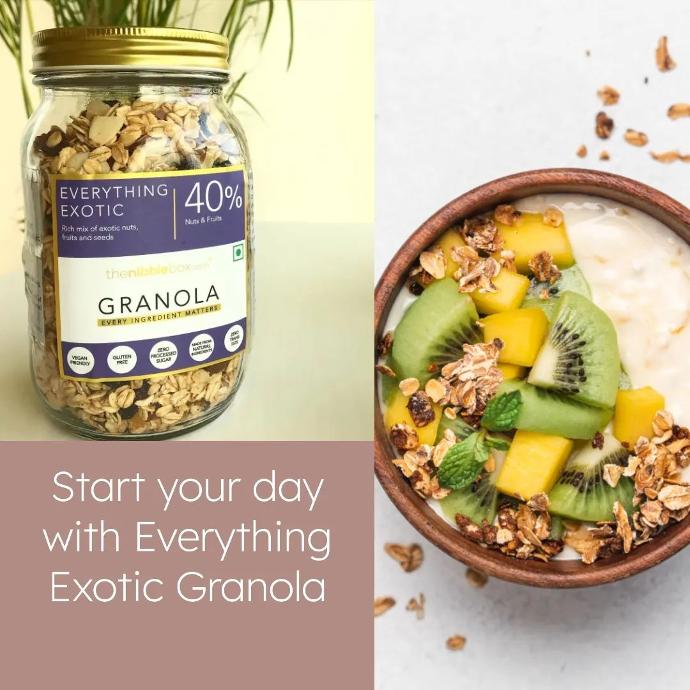 Choose from a variety of categories viz. Granolas, Porridges, Pancake mixes, Millet Cereals, Mueslis, Oatmeals,