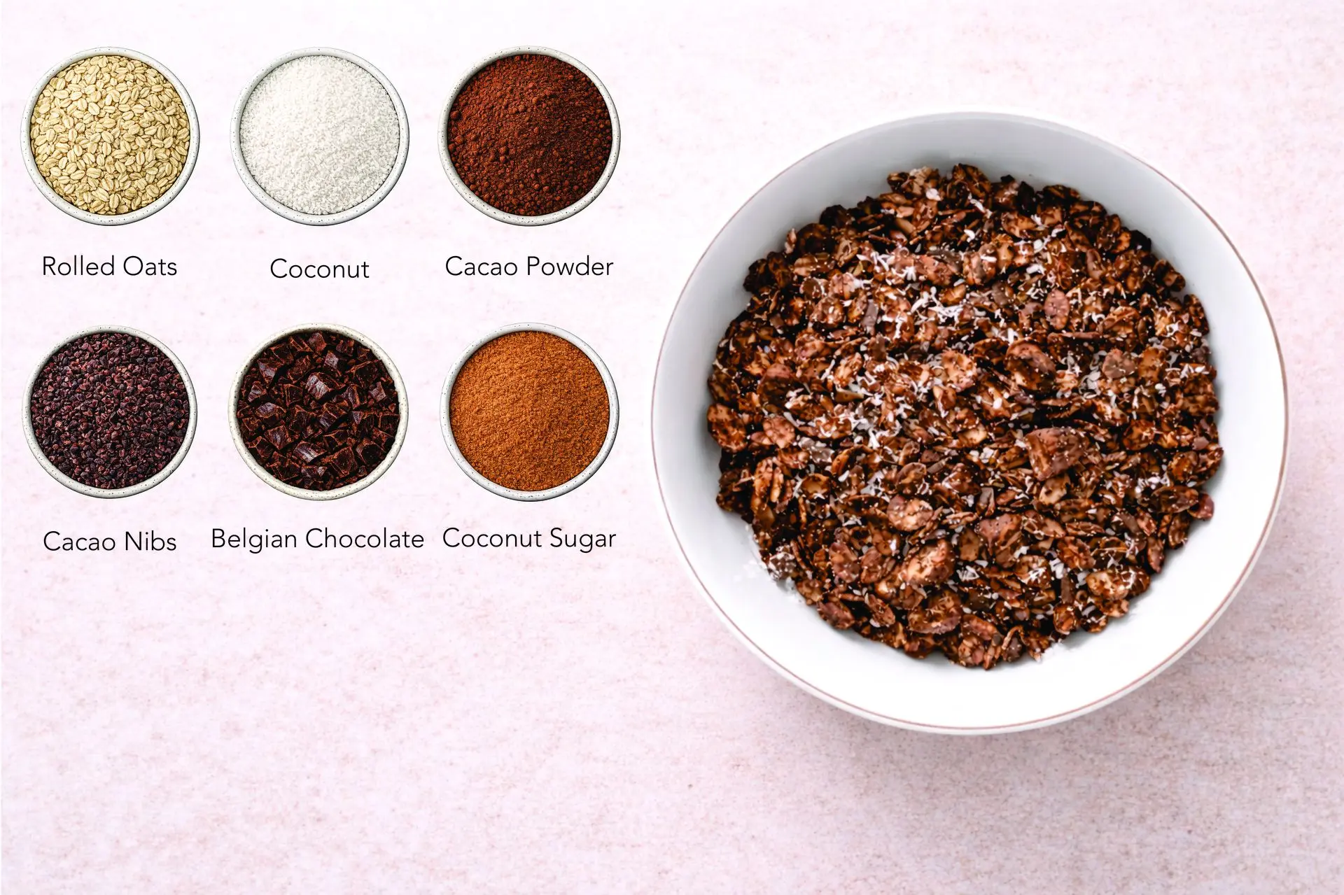 Every spoon of Cacao Cove Granola is packed with premium nuts, seeds, fruits, and superfoods.