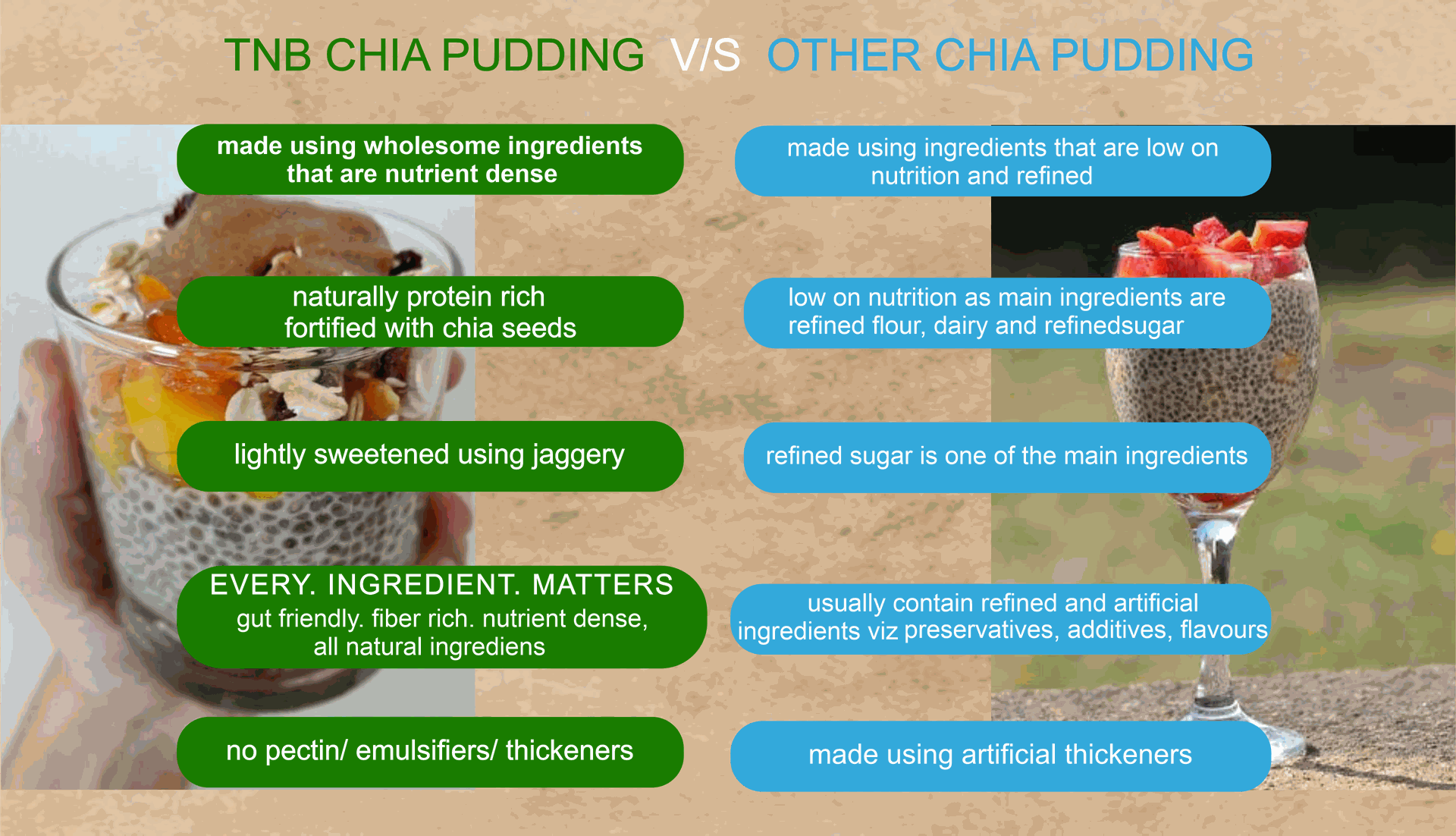 TNB Chia pudding mixes are designed with every ingredient thoughtfully chosen so that you get to truly enjoy this breakfast for its taste, texture and for its health benefits.