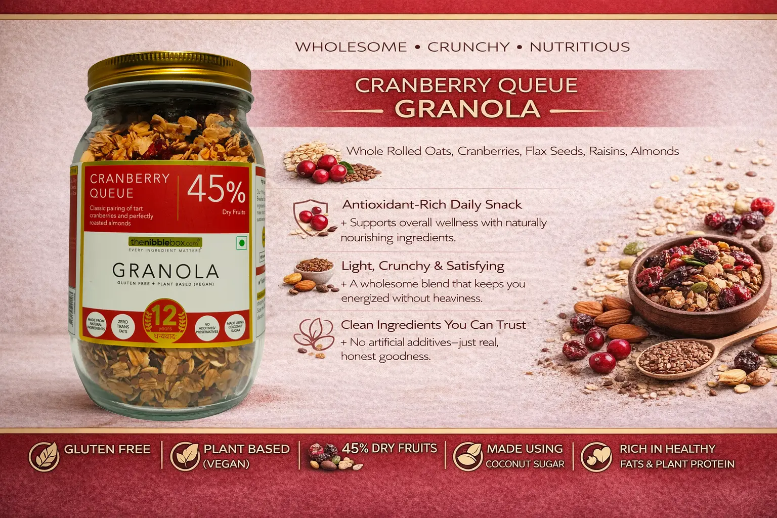 Cranberry Queue Granola – 45% Dry Fruits